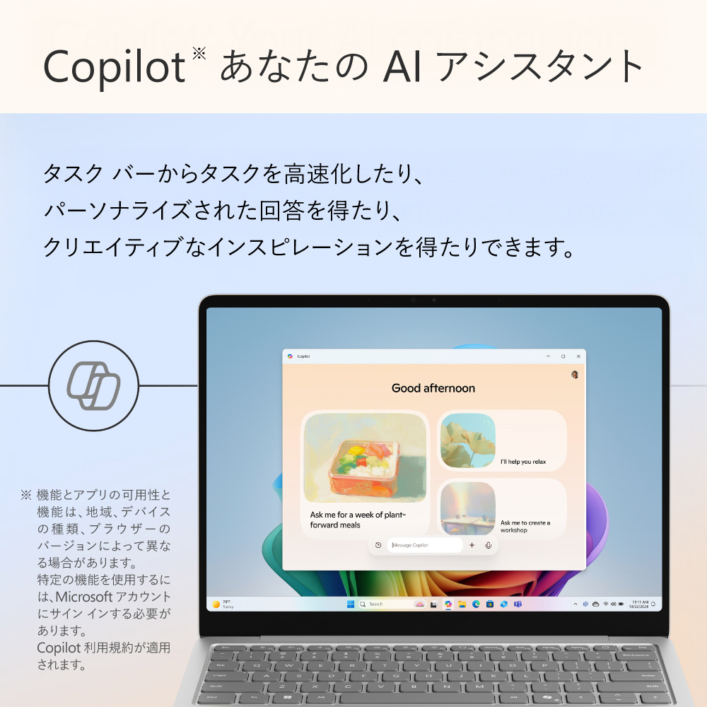 [無線 LAN]Wi-Fi 7 ※6GHz帯は地域によって利用できない場合があります。 [ソフトウェア] Microsoft Defender App※ ※Microsoft 365 PersonalまたはFamilyのサブスクリプションが必要です。 Preloaded Xbox app [搭載センサー]環境カラーセンサー
