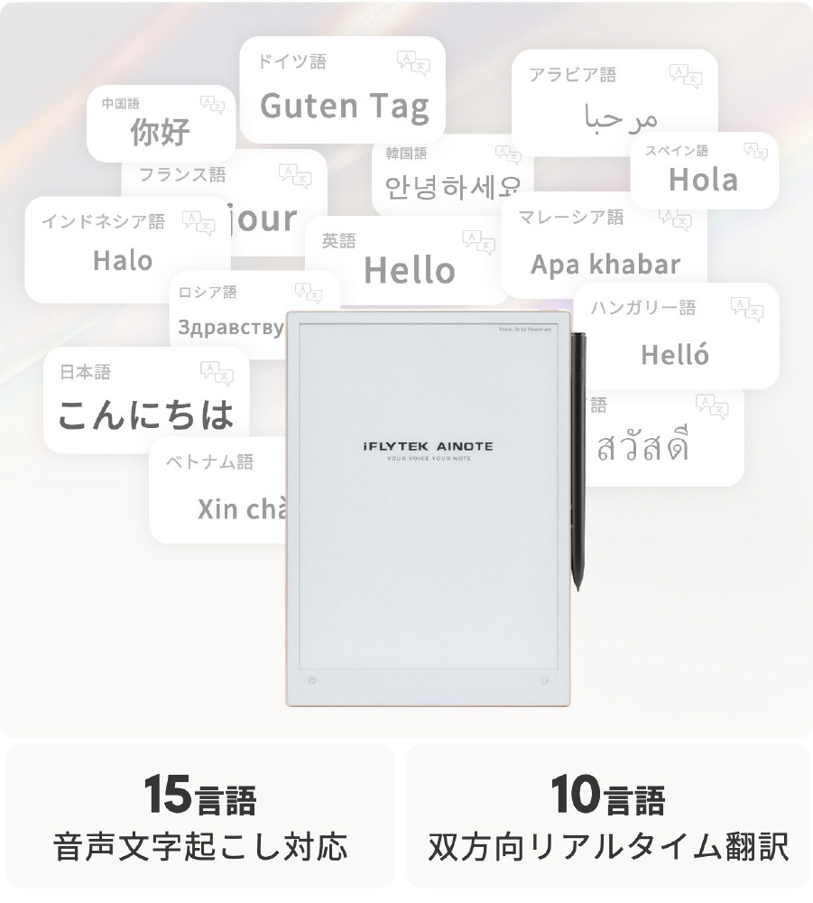 録音・文字起こし・手書き・要約・翻訳を1台で完結。