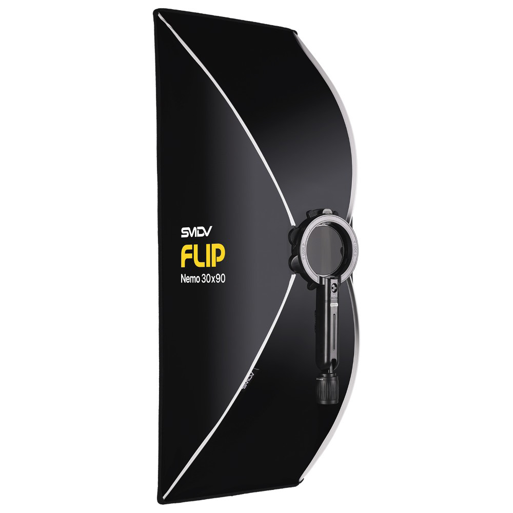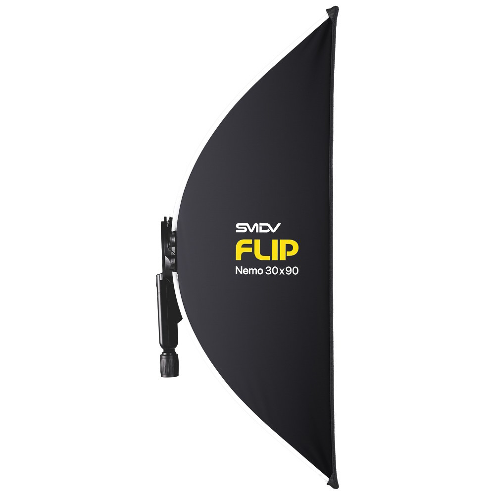Flip機構でスピーディーに展開し、角度調整グリップで照射位置も自在。小型スピードライト運用に適した軽量ソフトボックス。SMDV Flip Nemo 30x90cm(フリップ ネモ)