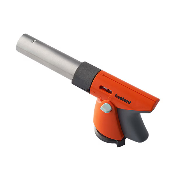 点火レバーを握ると点火、離すと消火する構造で、使用しない時に点火レバーを固定するロックつまみ搭載