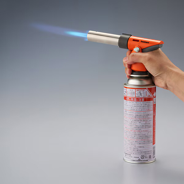 ・点火レバーを握ると点火、離すと消火する安全設計:手のひらでにぎって点火するデザイン。火力調整つまみを無くし、ワンアクションで点火可能です。