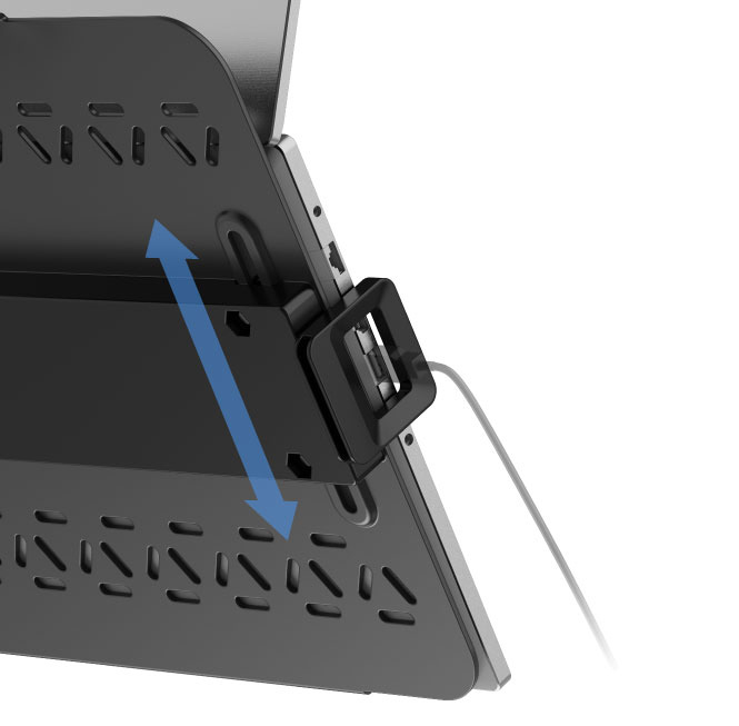 ■サイドホルダーは上下に移動可能、ノートPCのポートの無い位置で固定できます。