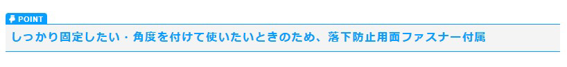 ■しっかり固定したい・角度を付けて使いたいときのため、落下防止用面ファスナー付属