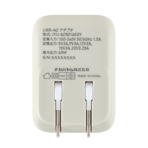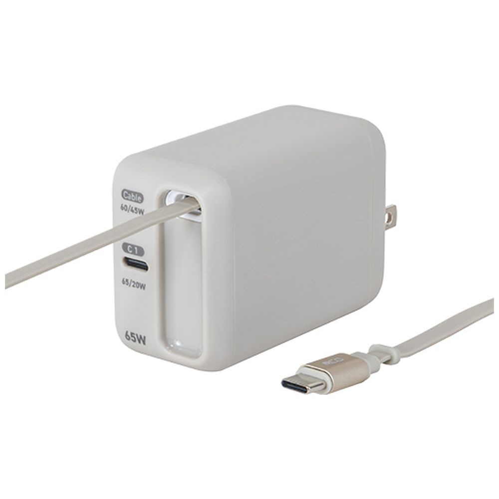 AC⇔USB-C充電器+USB-Cポート ノートパソコン・タブレットPC対応 65W [0.6m /USB Power Delivery対応] グレージュ JYU-ACR0165GY