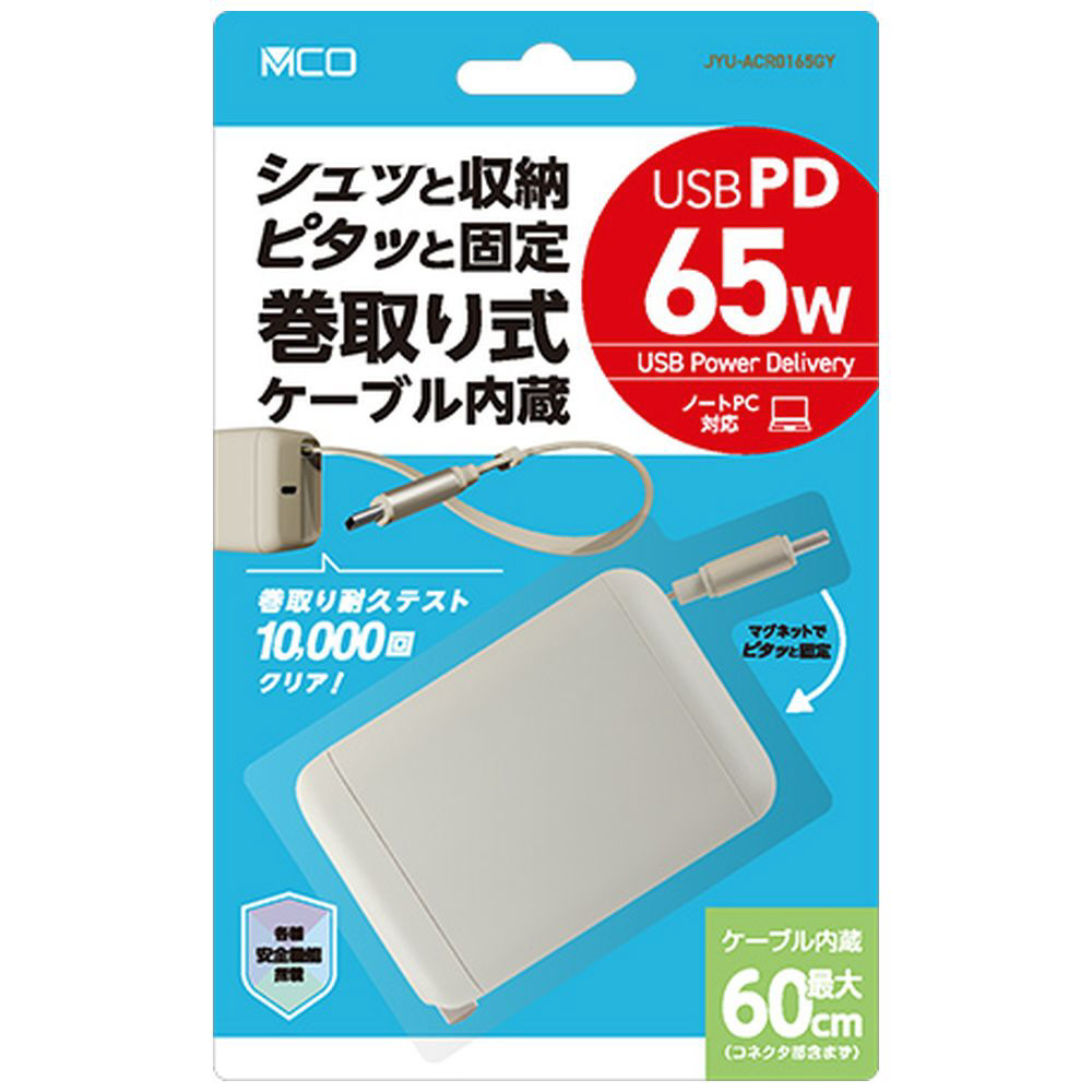 「巻取りケーブル付USB PD充電器 65W」