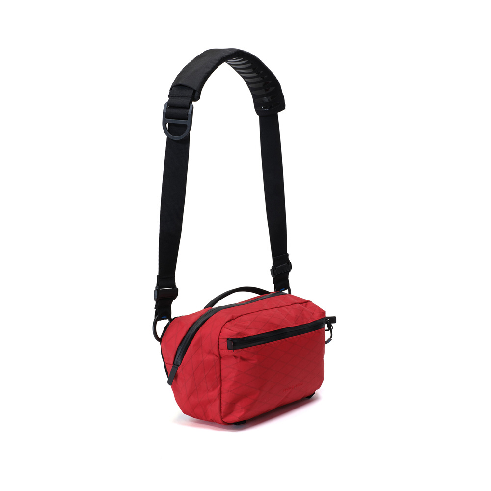 グラギアがはじめて手がけたスリングバッグです。軽量でありながら耐久性と耐候性に優れた非常に丈夫な生地、X-Pac? VX-21を採用。
