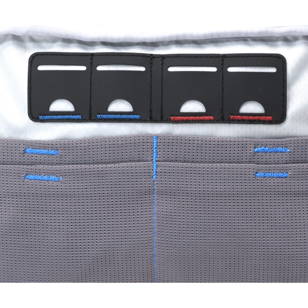 また、メインコンパートメントのジッパーが意図せず開いているときにすぐに気づけるよう、ジッパー裏側には目につきやすいブルーの下地を採用しています。