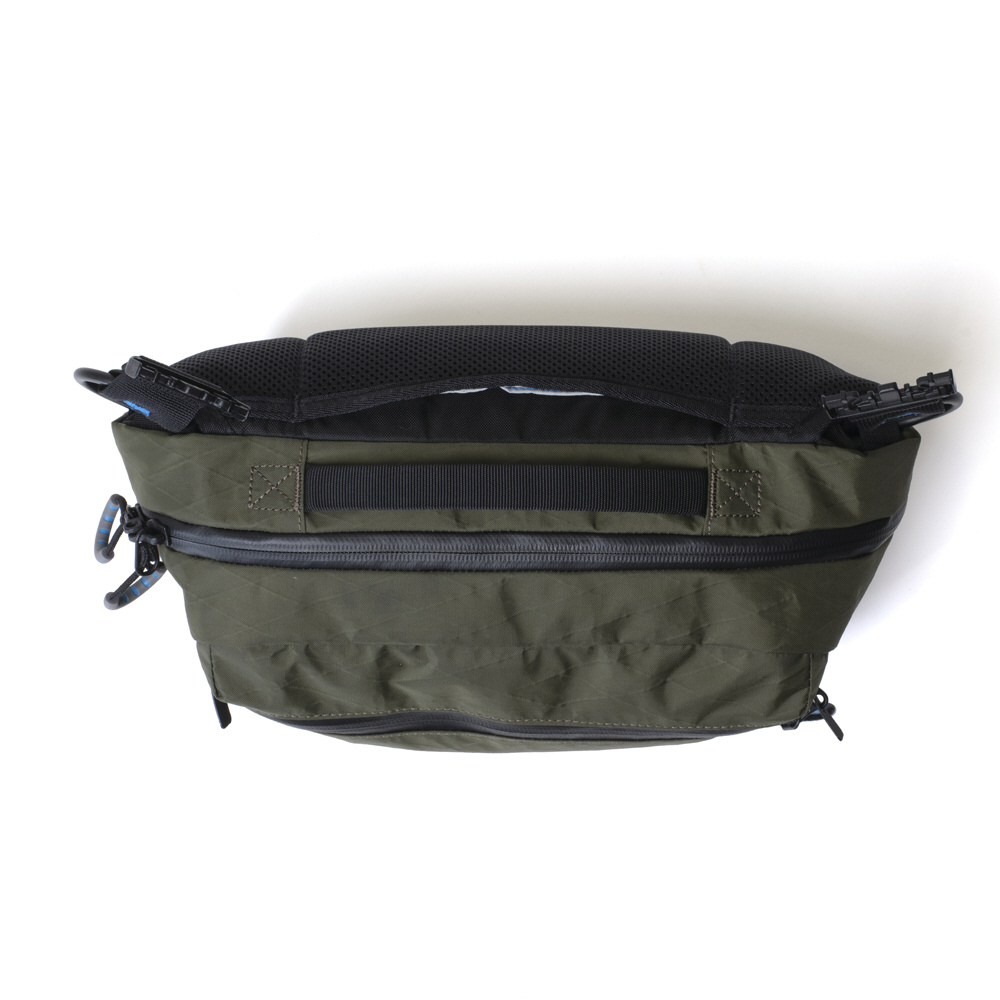 グラギアがはじめて手がけたスリングバッグです。軽量でありながら耐久性と耐候性に優れた非常に丈夫な生地、X-Pac? VX-21を採用。