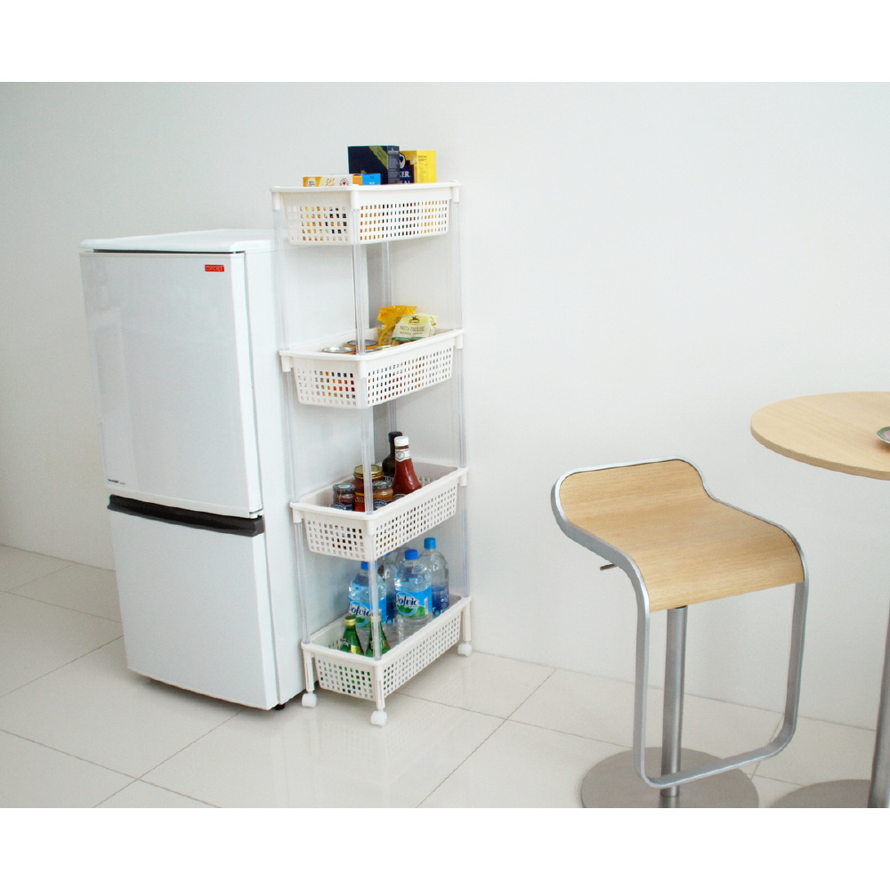 ランドリーバスケット バスケットワゴン スリム 4段 キャスター付