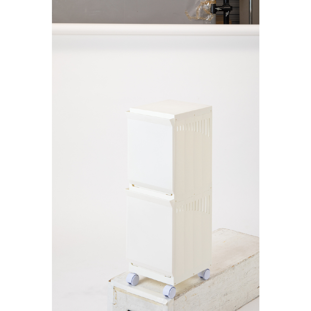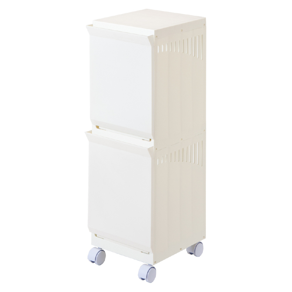 ランドリーボックス Clevan Half 2段 ランドリーラック 洗濯かご キャスター付 アイボリー