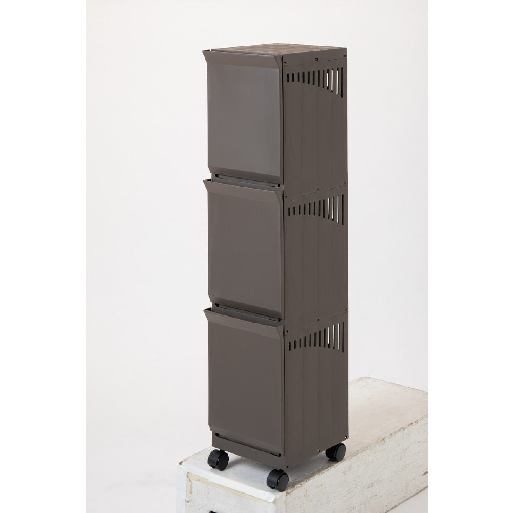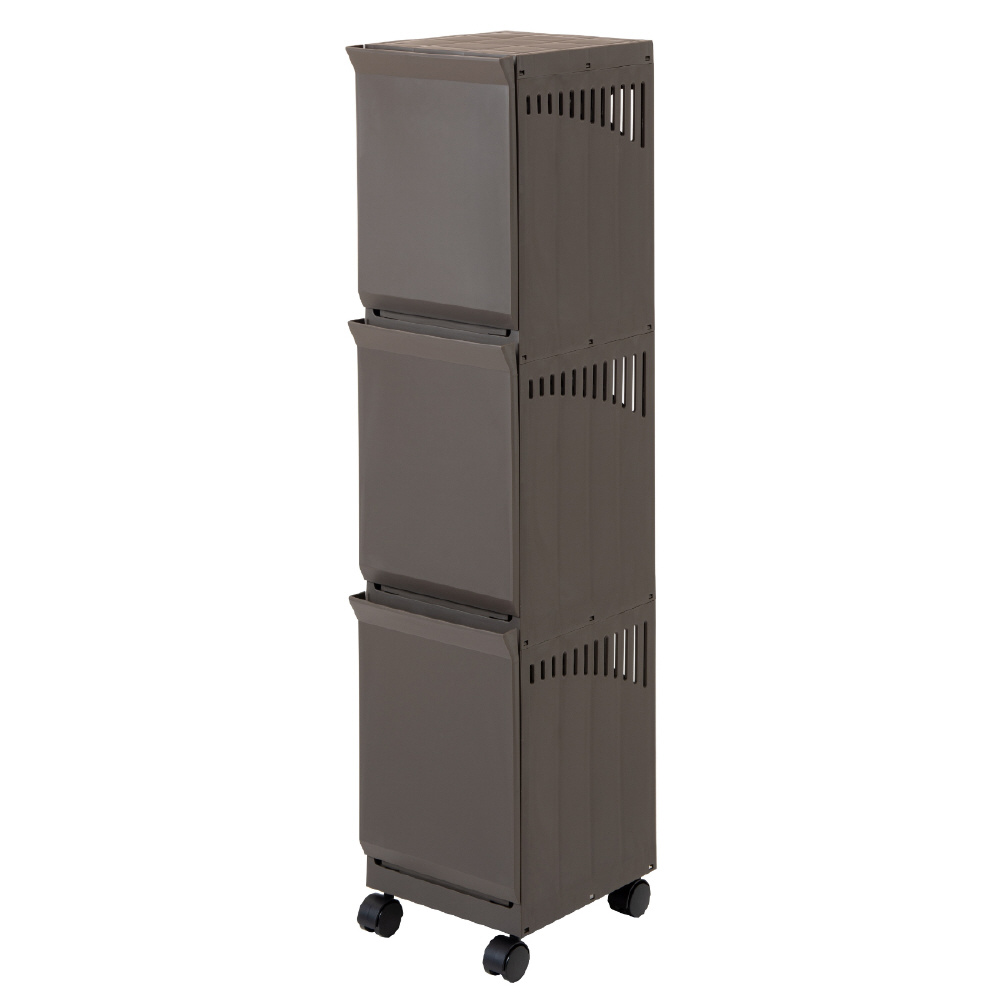 ランドリーボックス Clevan Half 3段 ランドリーラック 洗濯かご キャスター付 ブラウン