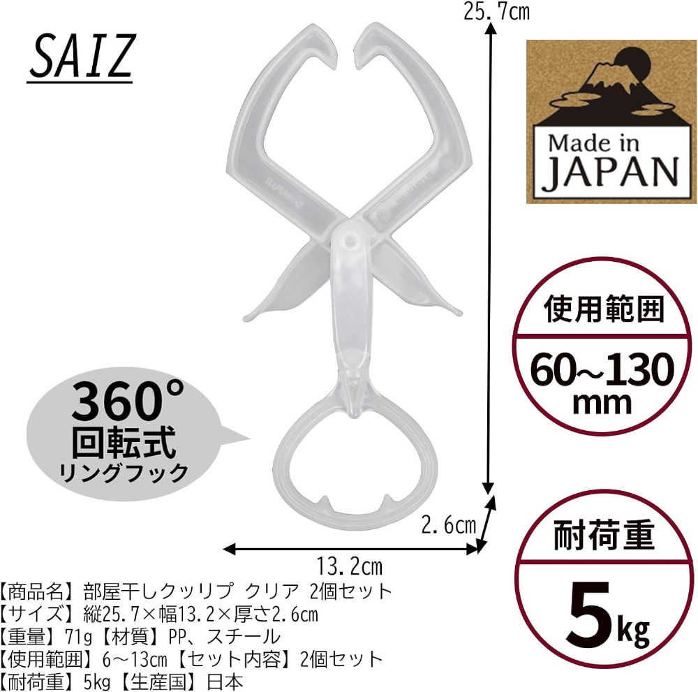 部屋干しクリップ2P(クリア) HC-02C