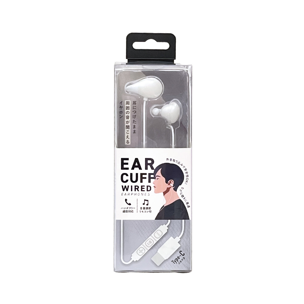 Type-C有線 イヤカフ型イヤホン ホワイト QTC-0802WH