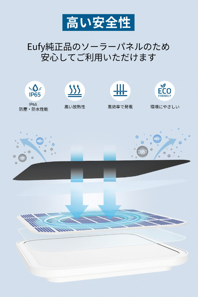 Eufy純正品のソーラーパネルのため安心してご利用いただけます。