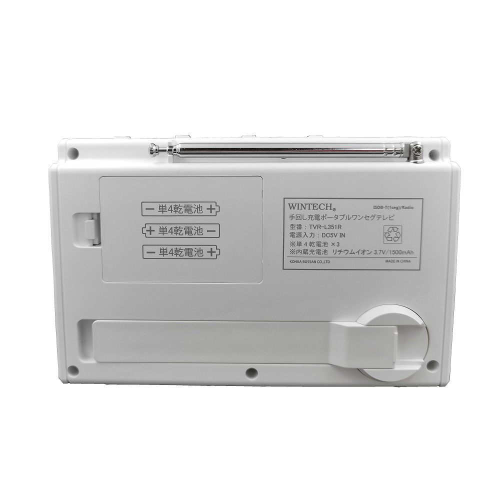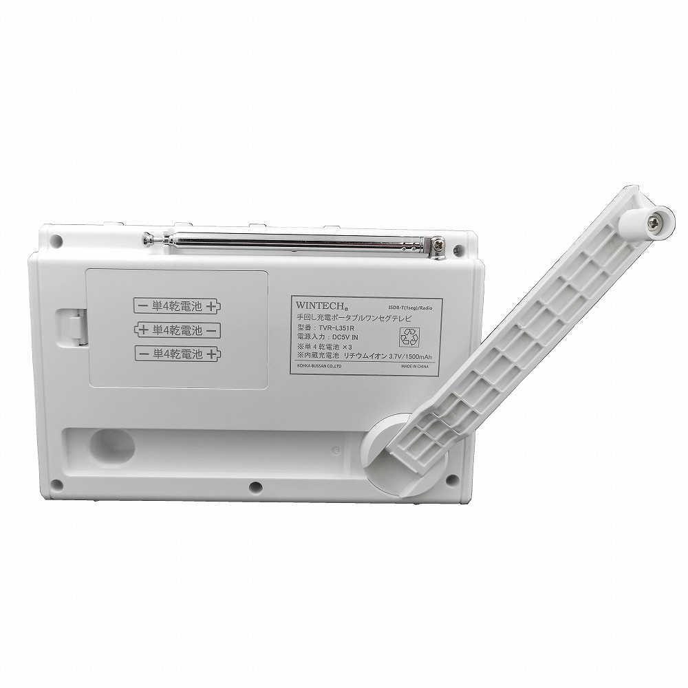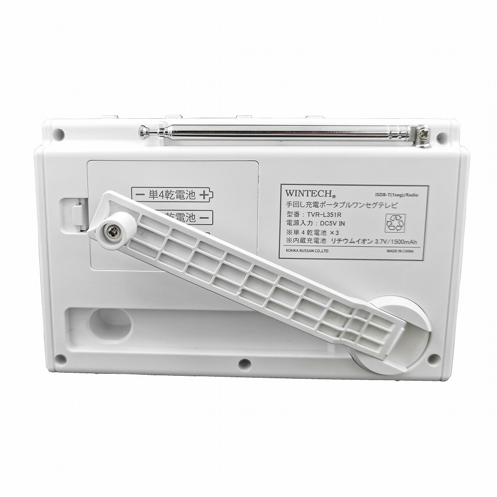 手回し充電対応 3.5インチ液晶ポータブルワンセグテレビ&ラジオ WINTECH ホワイト TVR-L351R [ワイドFM対応 /テレビ/AM/FM]