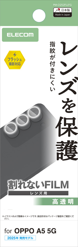 端末のカメラレンズを傷や汚れから守る、指紋防止・高透明タイプのカメラレンズ保護フィルムです。