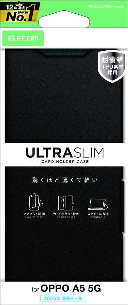端末の薄さや軽さを損ねない、薄型・超軽量なウルトラスリムタイプのソフトレザーケースです。