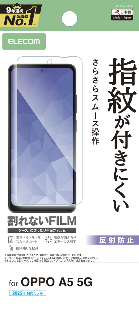 端末の画面を傷や汚れから守る、指紋防止・反射防止タイプの画面保護フィルムです。光の映り込みを抑え、見やすい画面を実現する反射防止タイプです。