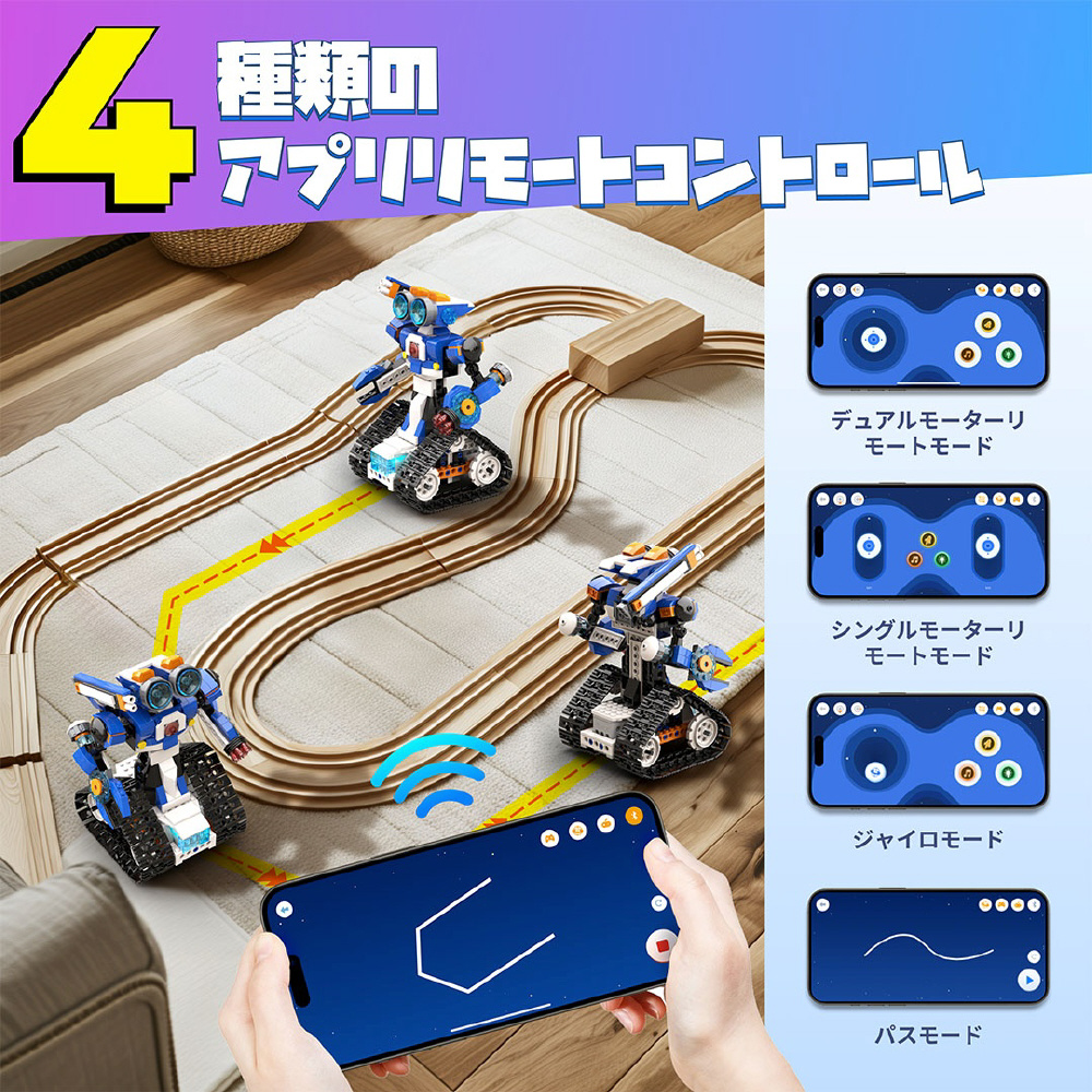 ブロックを組み立てて宇宙探査ロボットやドリルカーなど、6種類のマシンを作りプログラミングアプリで思いのままに動かそう!
