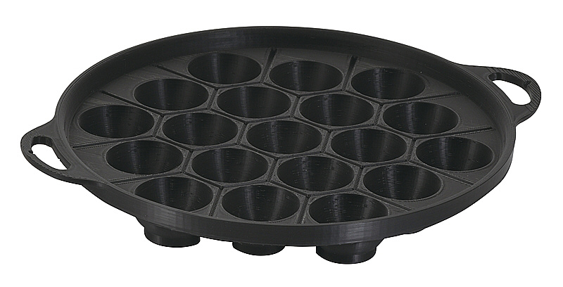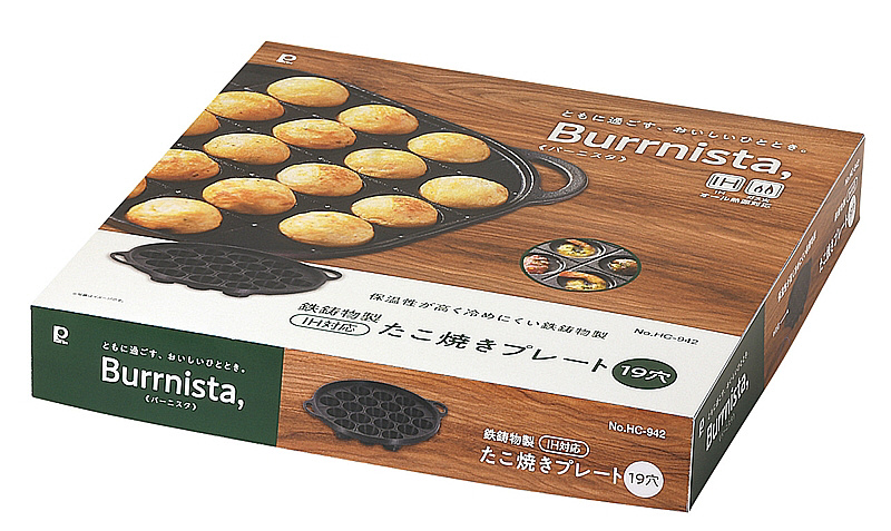 オール熱源対応、IH対応。保温性が高く冷めにくい鉄鋳物製。生地を多めに入れてもこぼれにくいフチ高形状。同じ大きさに作れる串ガイド付。初めてご使用になる前は、シーズニング(使用前の慣らし)の仕方に従ってお手入れしてください。Siセンサー付コンロでご使用の場合は、底面の中央部がSiセンサーに密着するように五徳に乗せてください。五徳の形状等により、安定しない場合があります。電子レンジでは使用しないでください。