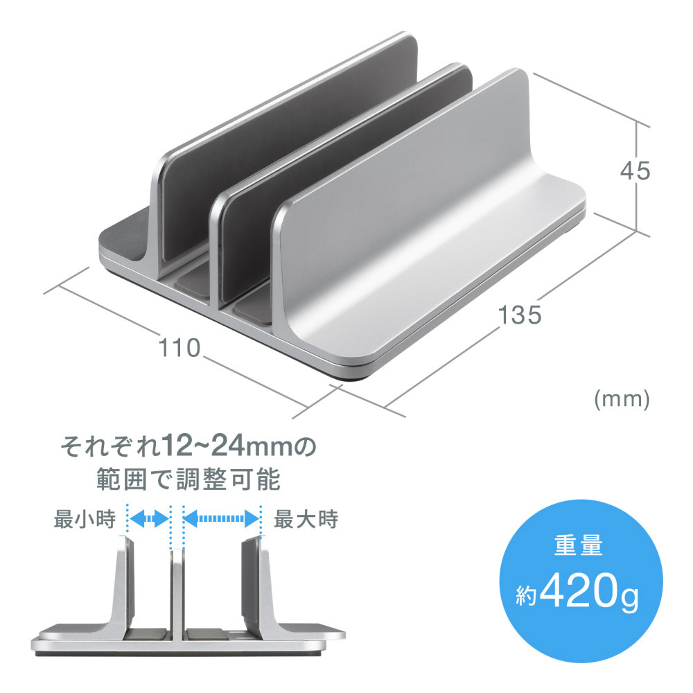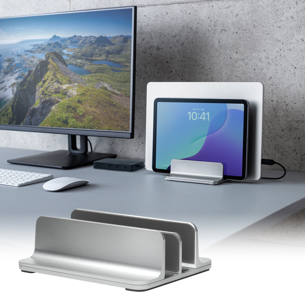 ノートパソコン / タブレットPCスタンド [2台用 / 厚み:〜24mm] アルミスタンド 縦置き PDA-STN91S