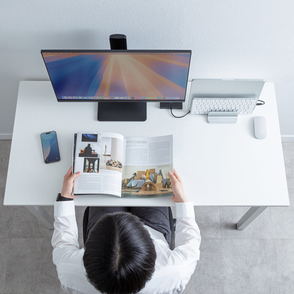 ■垂直にノートパソコンを設置することで、デスクスペースを節約できます。