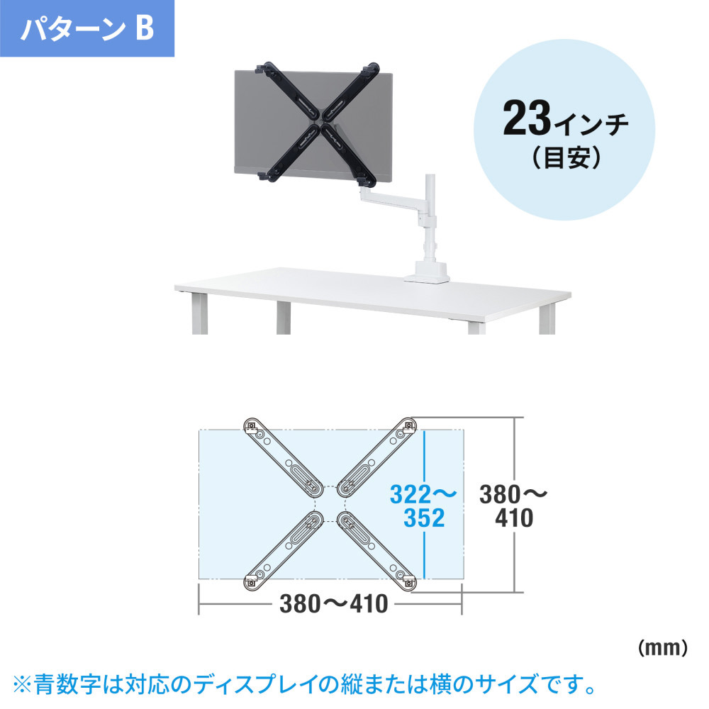 ■対応厚さ10〜70mmで、さまざまなモニターにフィットしやすく、安定した設置が可能です。