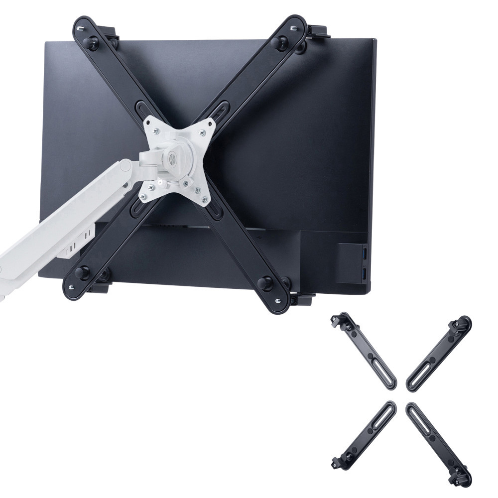 VESA規格取り付け穴のないモニターを、モニターアームに取り付けられる、モニターマウントホルダー。