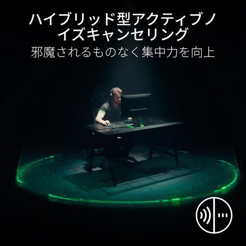 PlayStation 用 e スポーツゲーミングヘッドセットに搭載された高度なハイブリッド型 ANC と、完璧な密閉を形成する回転式イヤーカップとハイブリッドメモリーフォーム イヤークッションによる優れた遮音性で、邪魔されるものなく集中できます。Razer Synapse または Razer Audio アプリで調整可能な 4 段階のノイズキャンセリングレベルで、エクスペリエンスをカスタマイズできます。