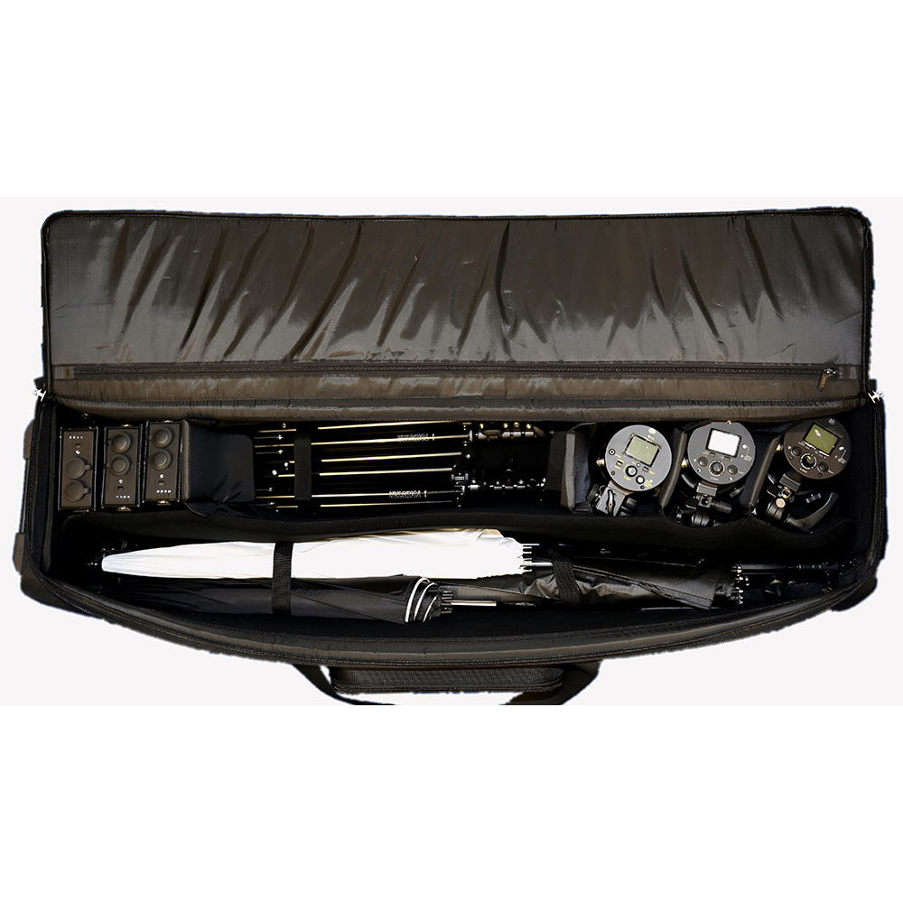 ●目安収納量:ライトスタンド×3,アンブレラ×3、モノブロックストロボ×3,ストロボ用バッテリー×3