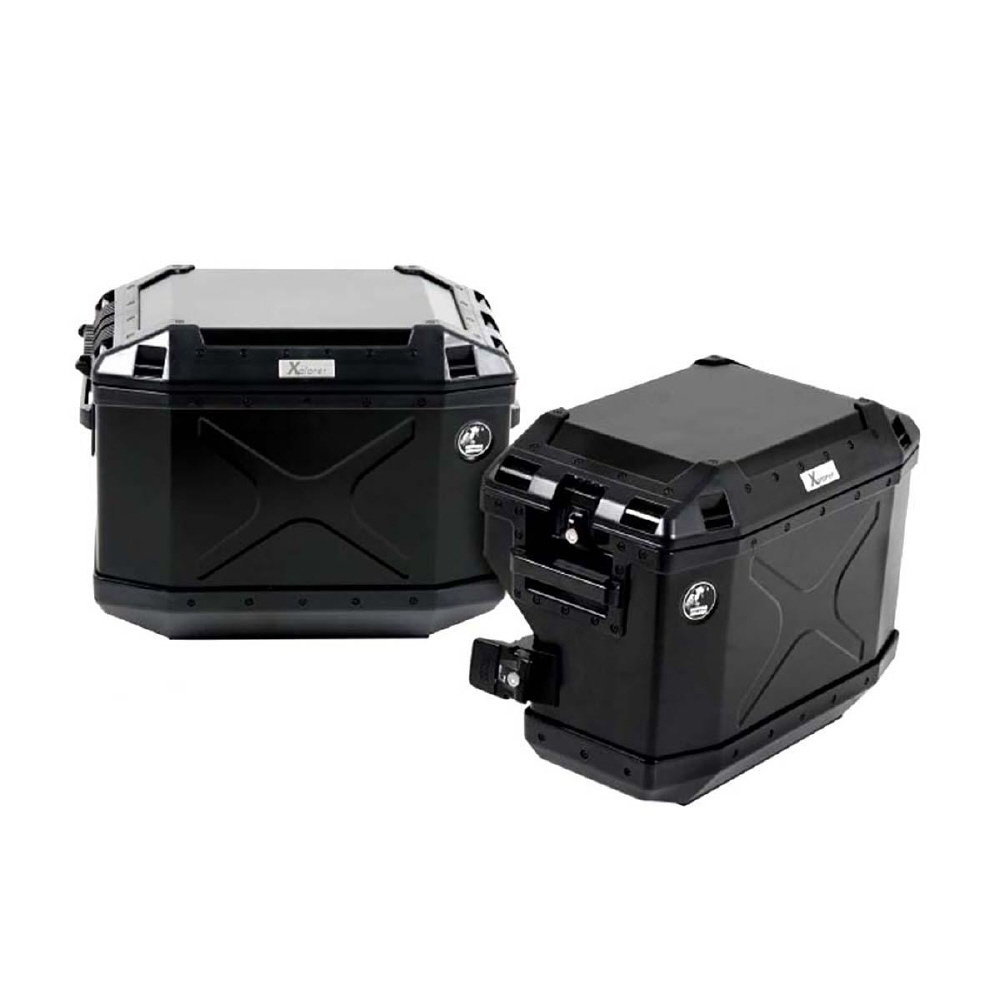 エクスプローラーカットアウトは、右側サイレンサー部分との干渉を逃がしながら左右対称幅となるようカットアウトを施したエクスプローラーサイドボックスとサイドケースキャリアをセットにした特別モデル。片側のみ配置されるサイレンサーに対し、左右サイドボックスを取り付けた際の幅の差を無くし、バランスの良いスタイルを保つことができます。エクスプローラーシルバーSC37&40と専用ステンレスキャリアのセットです。※左側SC40(40L)、右側SC37(37L)