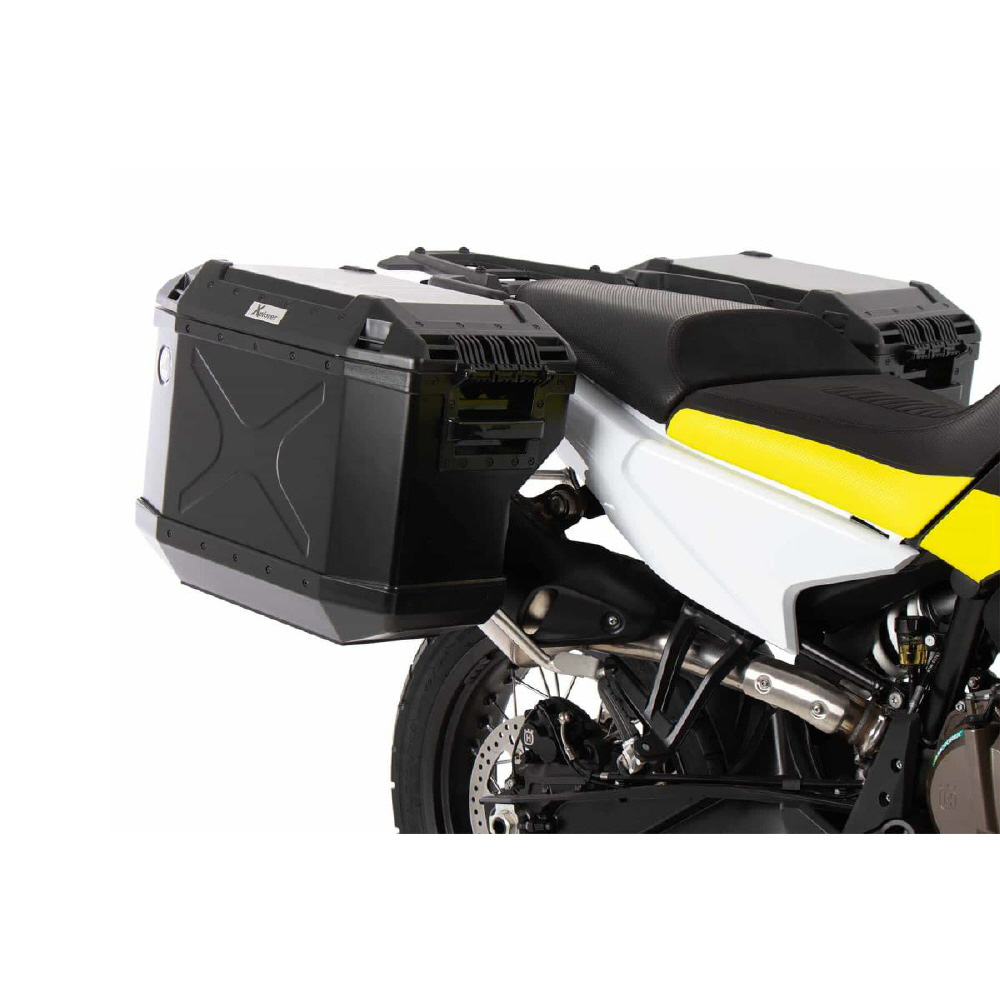 エクスプローラーカットアウトは、右側サイレンサー部分との干渉を逃がしながら左右対称幅となるようカットアウトを施したエクスプローラーサイドボックスとサイドケースキャリアをセットにした特別モデル。片側のみ配置されるサイレンサーに対し、左右サイドボックスを取り付けた際の幅の差を無くし、バランスの良いスタイルを保つことができます。エクスプローラーシルバーSC37&40と専用ステンレスキャリアのセットです。※左側SC40(40L)、右側SC37(37L)