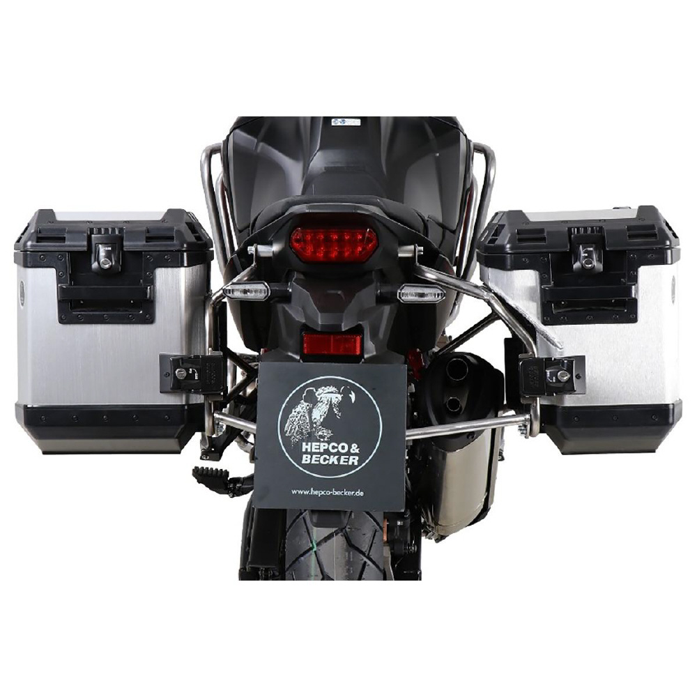 エクスプローラーカットアウトは、右側サイレンサー部分との干渉を逃がしながら左右対称幅となるようカットアウトを施したエクスプローラーサイドボックスとサイドケースキャリアをセットにした特別モデル。片側のみ配置されるサイレンサーに対し、左右サイドボックスを取り付けた際の幅の差を無くし、バランスの良いスタイルを保つことができます。エクスプローラーシルバーSC37&40と専用ステンレスキャリアのセットです。※左側SC40(40L)、右側SC37(37L)