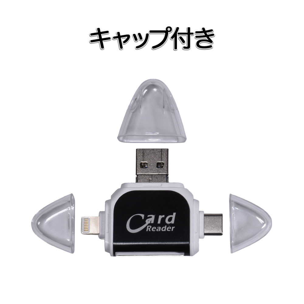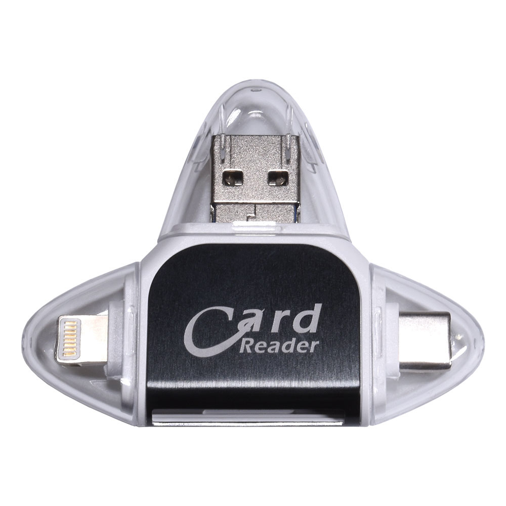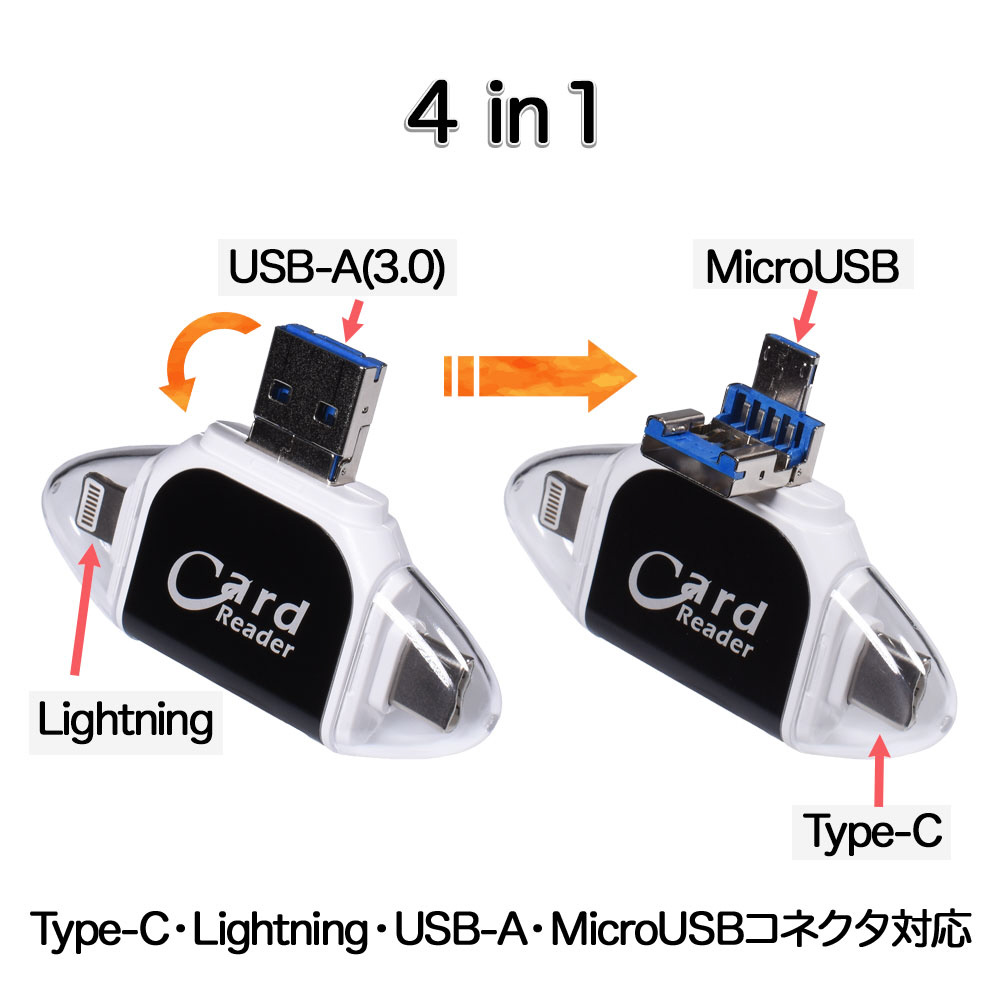 GLD1964MJ42A SDカードリーダー 4 in 1 MicroSDカード Type-C/USB 3.0 MicroUSB Lightning