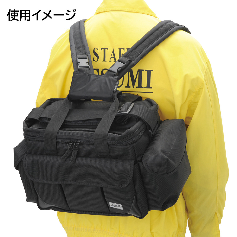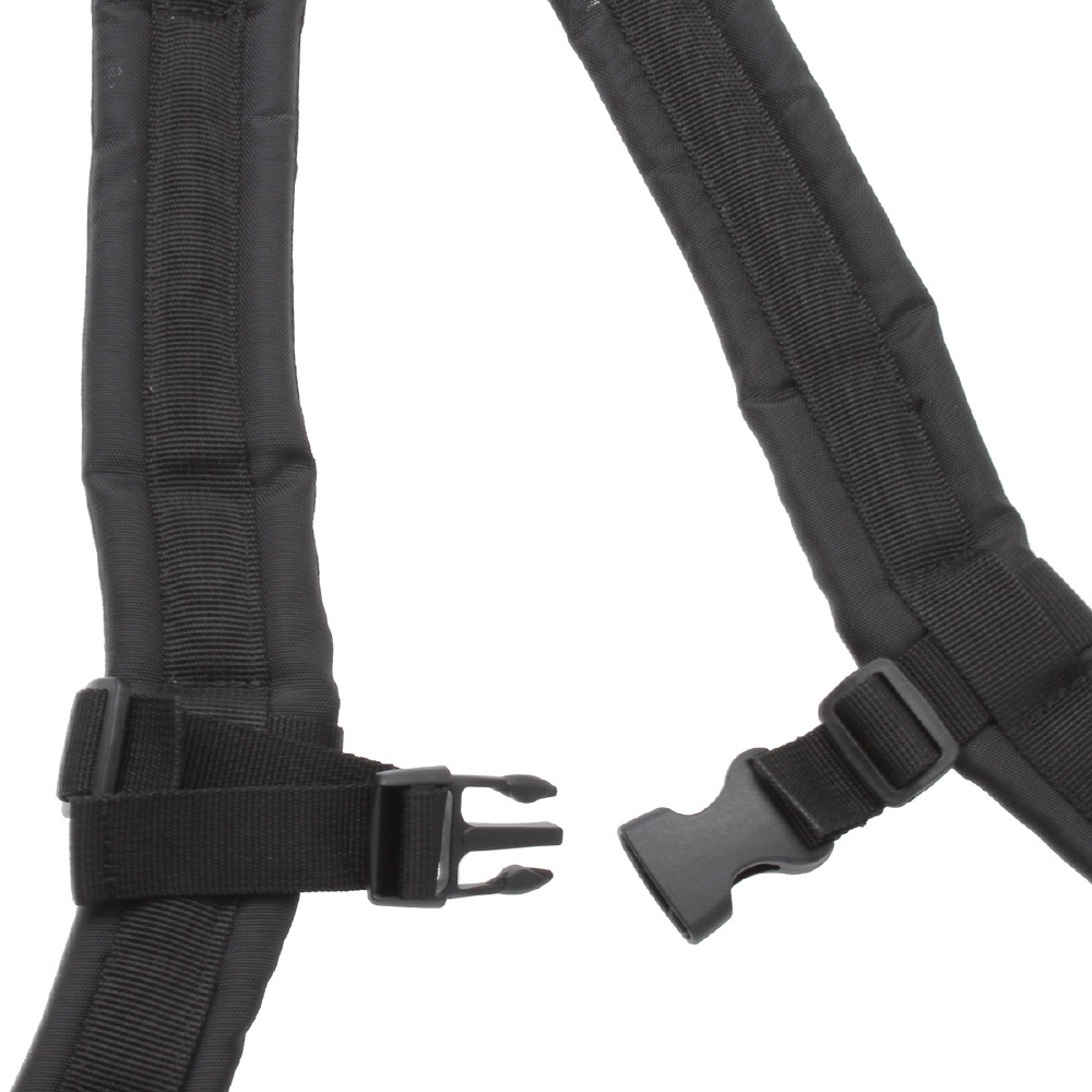 大型ショルダーバッグをリュックに変換。ショルダーバッグのハンドル部分と底部2点を使って背負えるようにするリュックベルトです。大型カメラバッグなど、底部に2つのDリングを備えたバッグに対応。Dリングに取り付けるフックには、耐久性の高い金属製パーツを採用しています。
