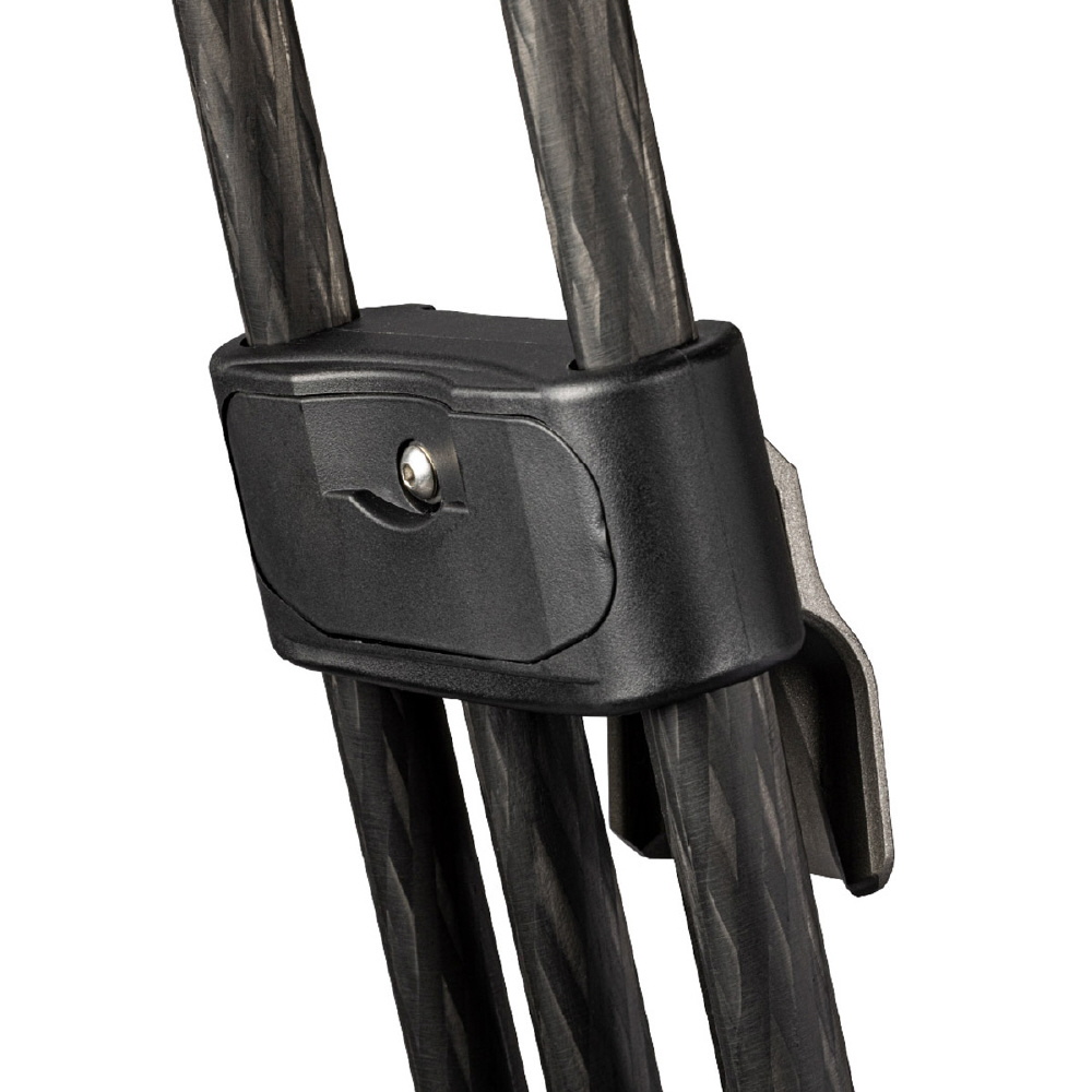 【特徴6】コンパクト設計 : 特殊設計の楕円形のカーボンパイプを採用しているため、剛性の高い75mm三脚でありながら折り畳んだ時に非常にコンパクトです。