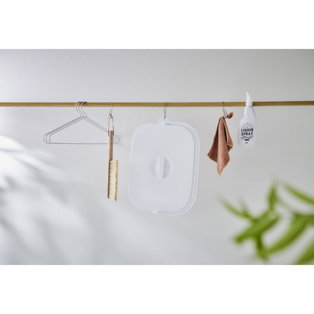 吊り下げ用フック付きで吊り下げて収納が可能。