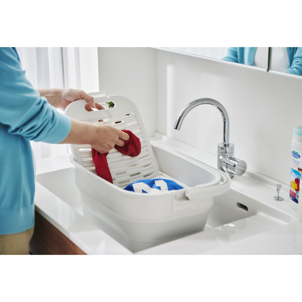 仕様3 材質:枠・底・ハンドル・フタ・洗濯板/ポリプロピレン 本体・水抜き栓/熱可塑性エラストマー