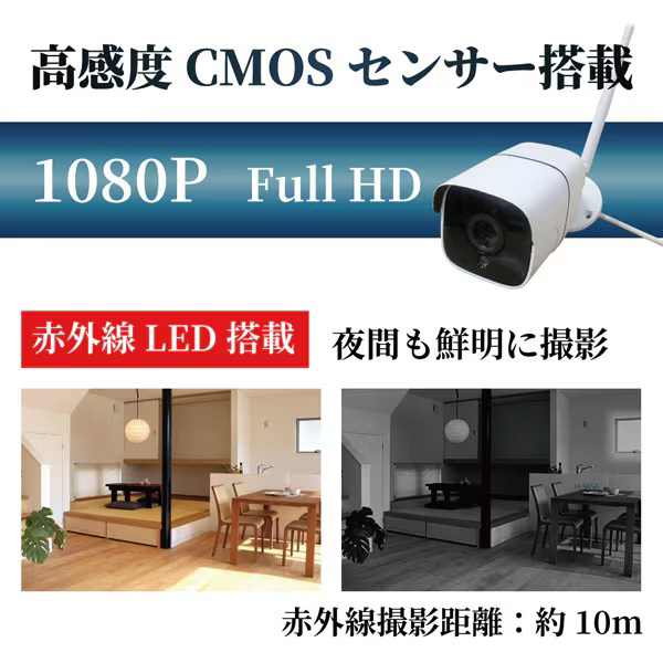1080P FullHD 赤外線LED搭載 夜間も鮮明に撮影
