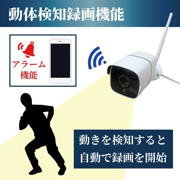 録画器内蔵 ワイヤレス防犯カメラ。スマホでリアルタイム監視。