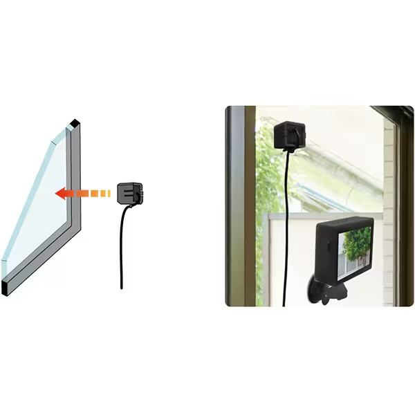窓ガラスにカメラを貼って、窓ガラス越しに屋外の監視ができます。