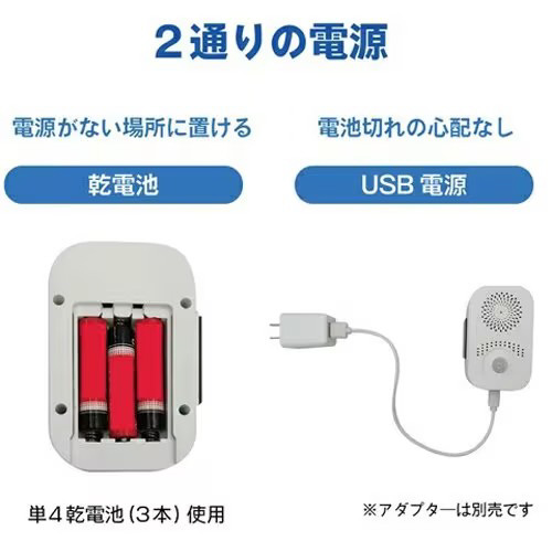 乾電池とUSB給電の2通りの給電方式です。