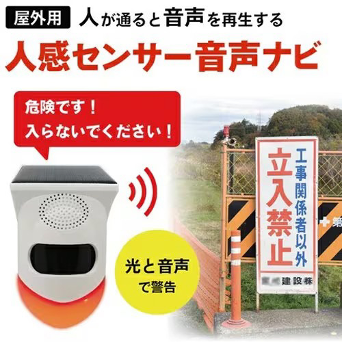太陽光で充電!通り過ぎる人にメッセージを伝える人感センサー音声ナビ(屋外仕様)