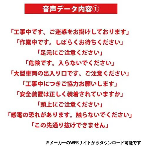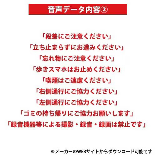 人感センサーで人を検知すると警告灯点滅と共に音声ガイドを再生する音声案内機器です。