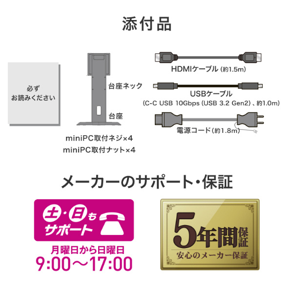 取付用のネジ等も標準添付しているので、すぐに取り付けることが可能です。