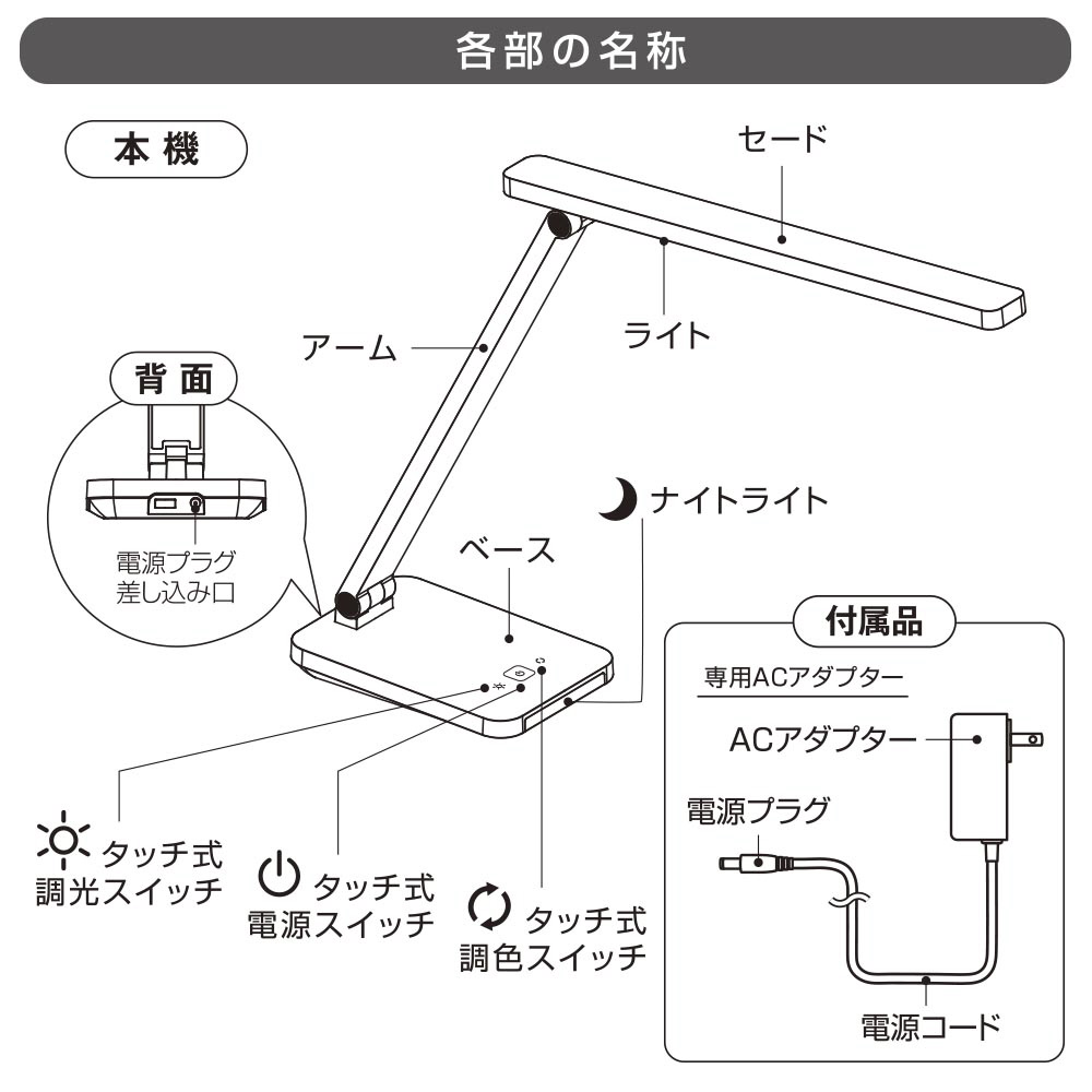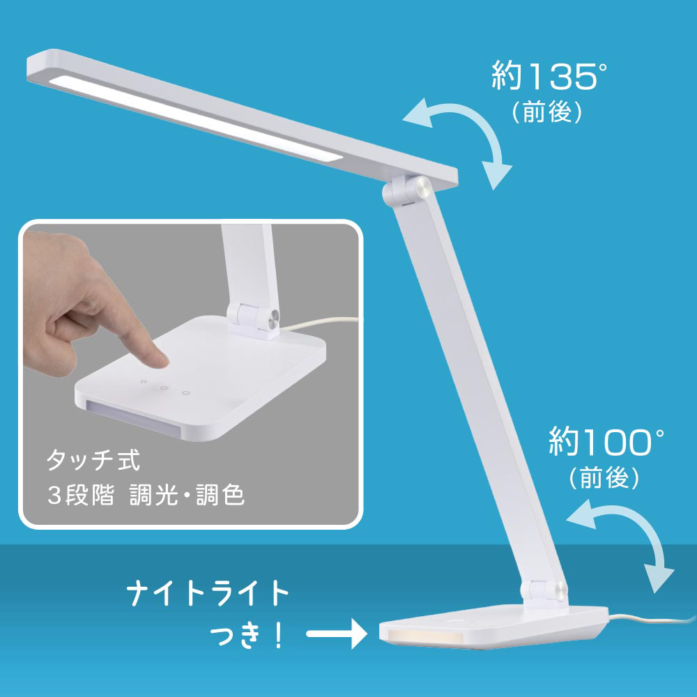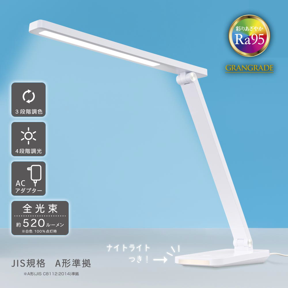 LEDデスクライト 4段階調光 3段階調色 520lm ホワイト ODS-LDR618K-W [LED /昼光色〜電球色]