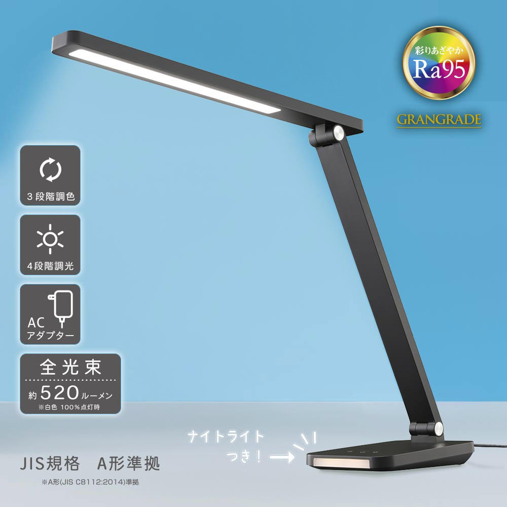 LEDデスクライト 4段階調光 3段階調色 520lm ブラック ODS-LDR618K-K [LED /昼光色〜電球色]