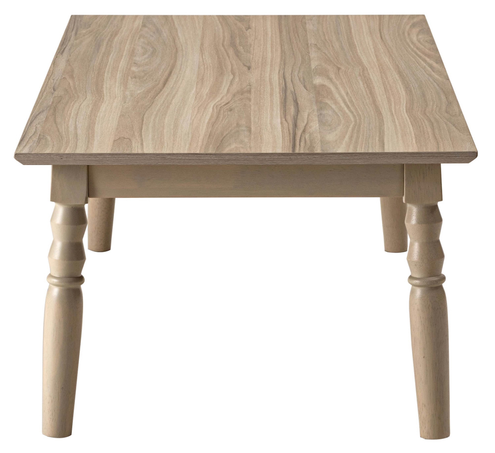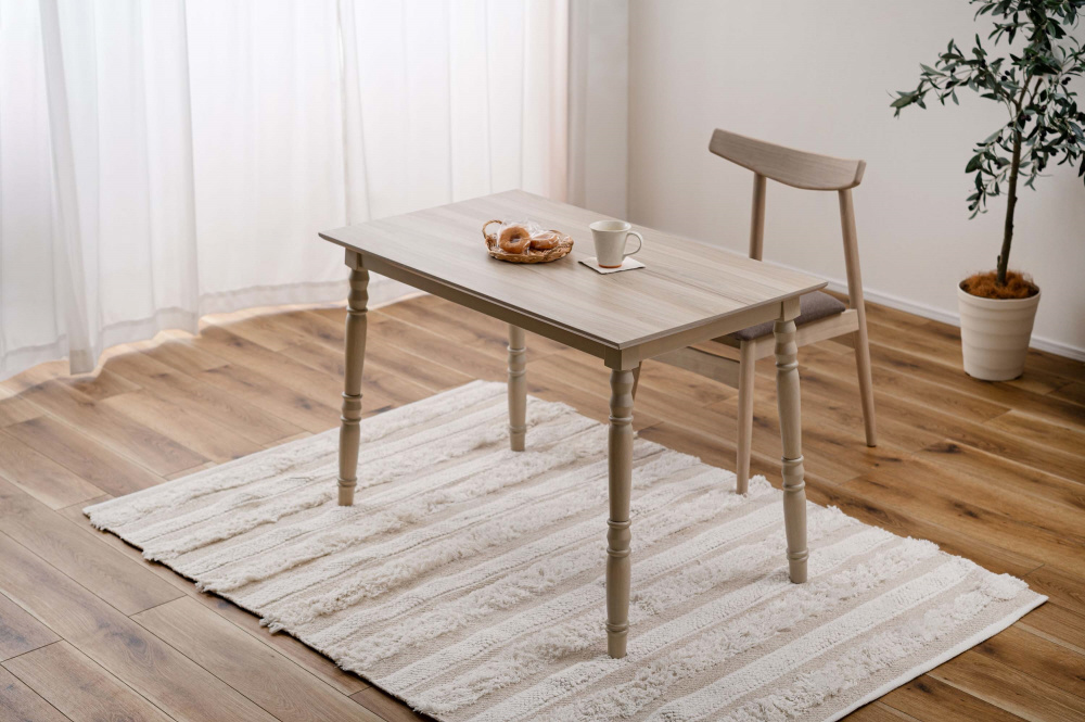 脚はくり脚デザインのこだわり仕様。継ぎ目が分かりにくいのもポイント。天板裏には天板固定ネジが付いているので、こたつ布団を使わない時は天板をしっかり固定。木のぬくもりが感じられる美しい木目調デザインの天板。
