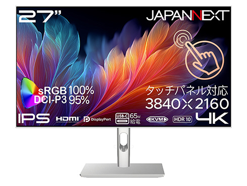 USB-C接続 PCモニター フラットスタンド対応(タッチパネル) ホワイト JN-IPST27U-FLDC6 [27型 /4K(3840×2160) /ワイド /60Hz]