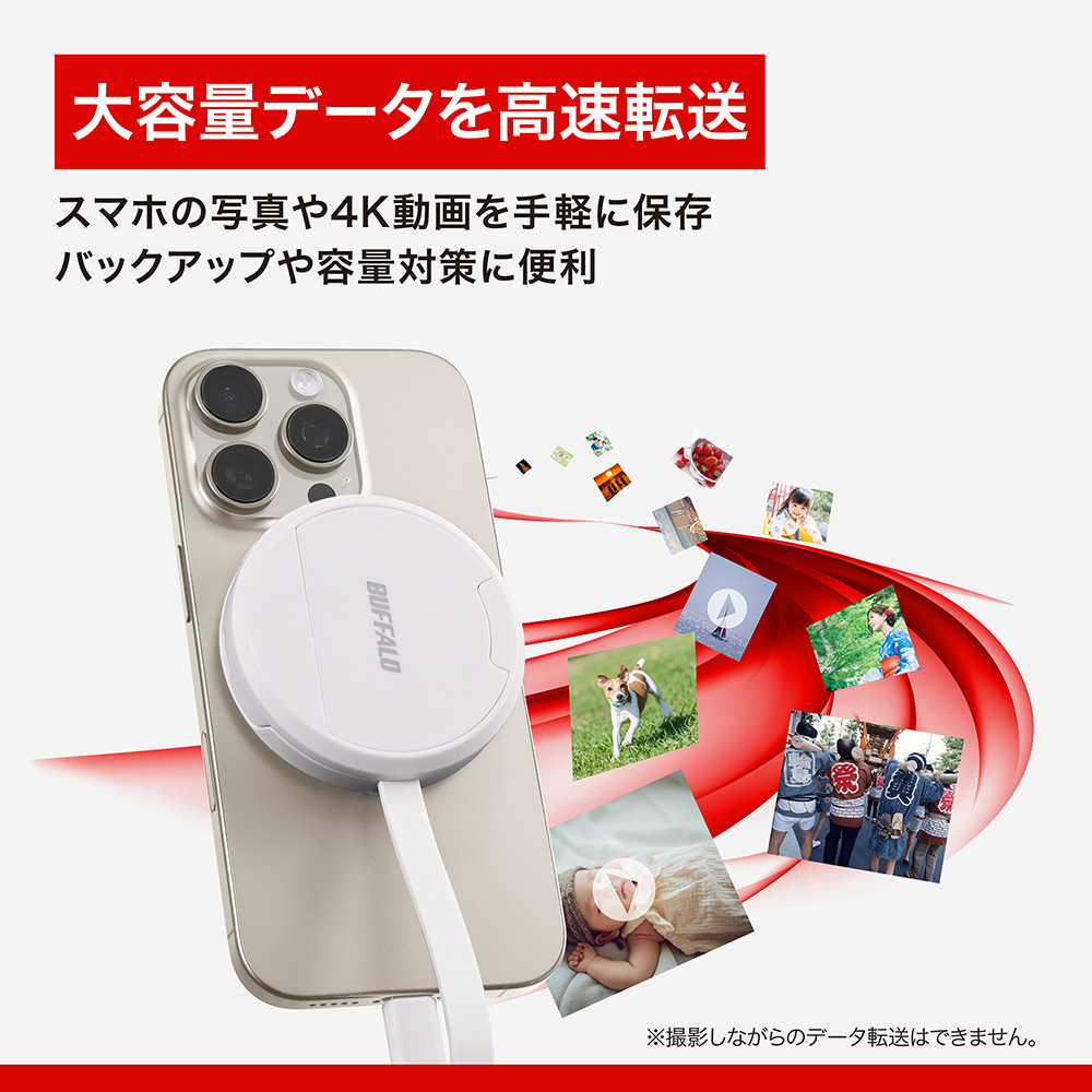 本商品は、バッファローアプリ「写真バックアップ」(無料)に対応。大切な思い出をもっと簡単に保存できます。